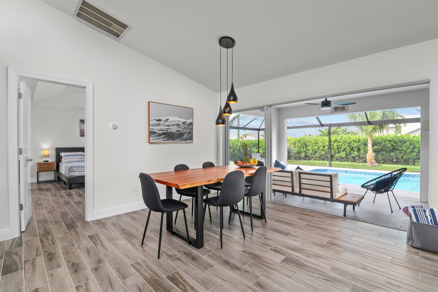 From the living room, dining room, master bedroom and 2nd Bedroom has direct access to the pool.