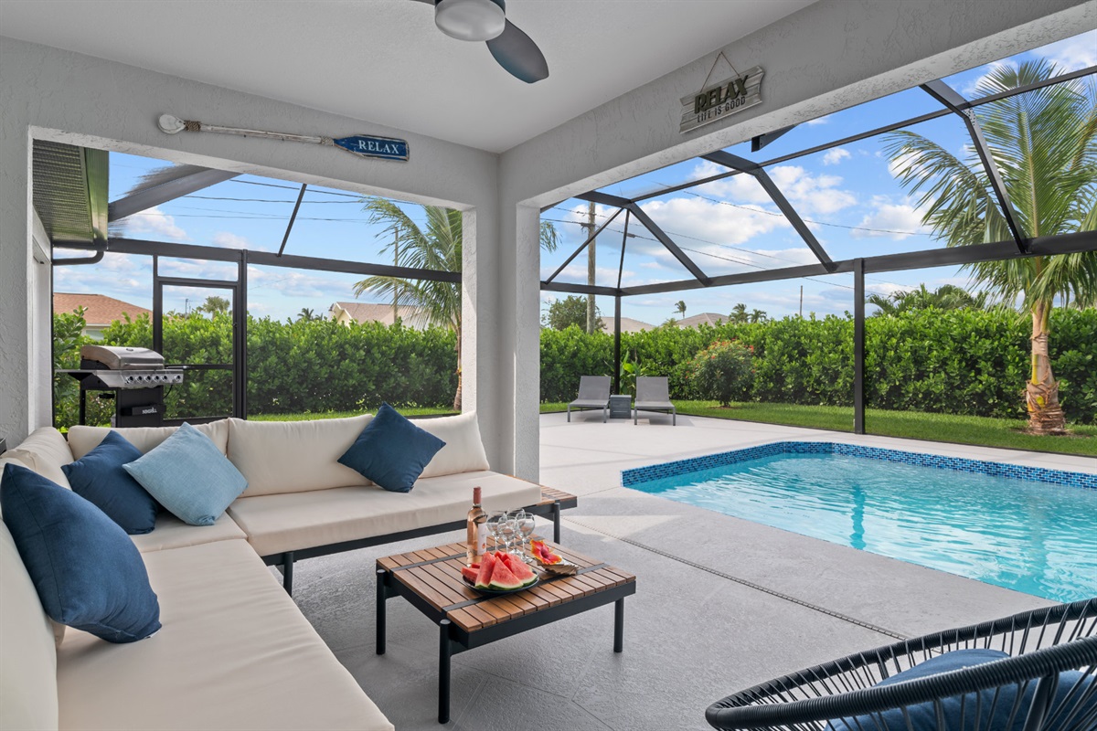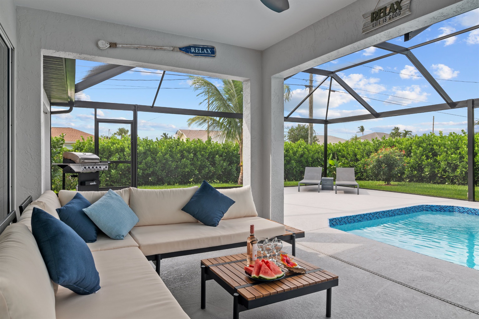 3 Bedrooms • 2 Bathrooms 2 Baths • Sleeps 4-6Villa Sundance is located in the most desirable area of Cape Coral. Surrounded by the 8 lakes and close to Cape Harbor, there is no better way for extended jogging tours, bike tours or skating tours. Unlike the rest of Cape Coral, the path is not blocked by inevitable canals and there are bike paths everywhere. Cape Coral's best restaurants and Tarpoon Point with its restaurants and shops are within walking distance. Various other shops, doctors, pharmacies, etc. are also within walking distance.