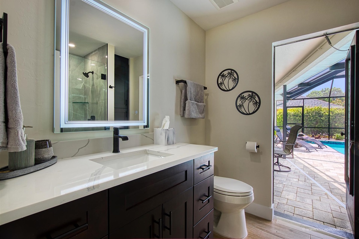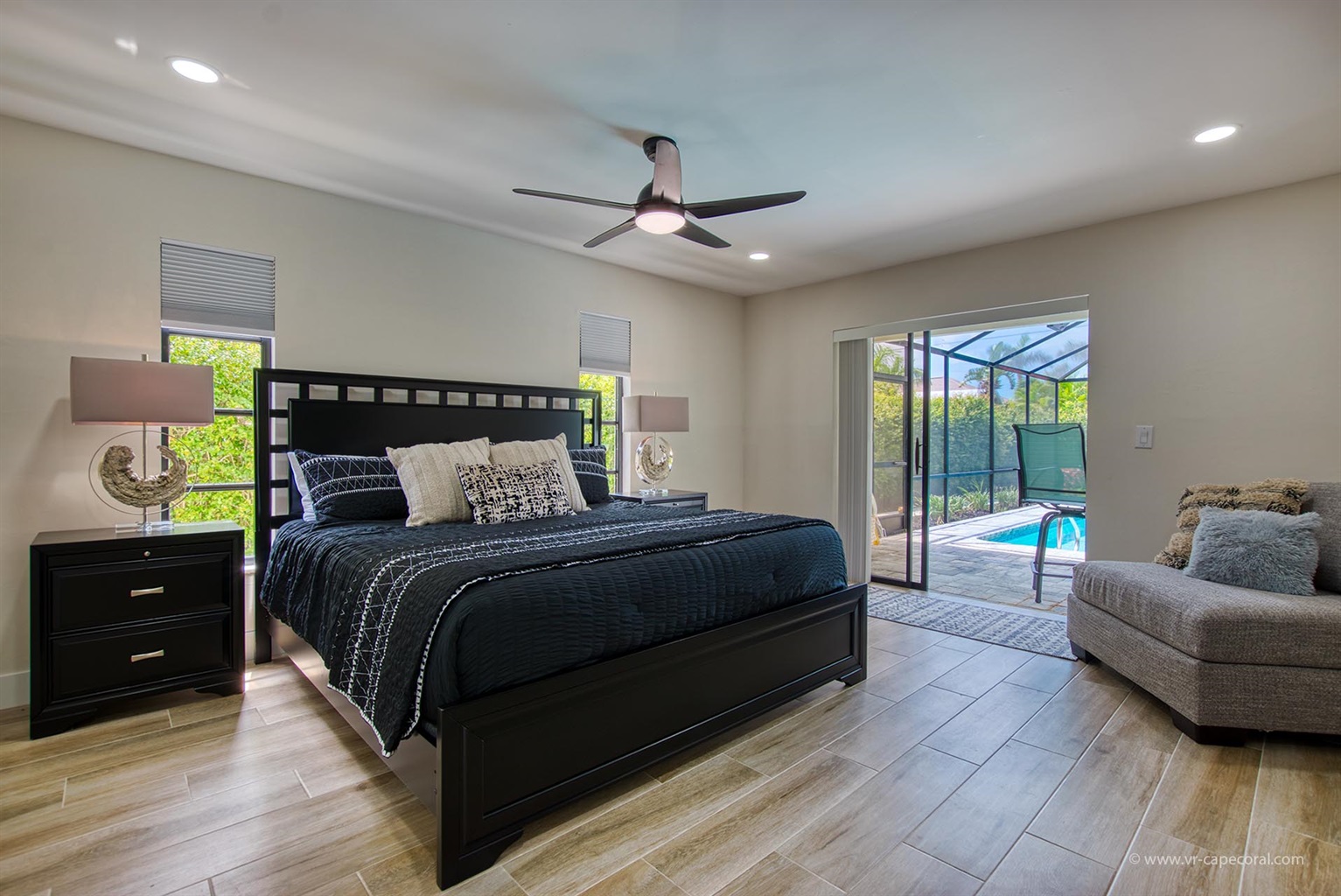 If you are looking for rest, the spacious master bedroom, will become your private sanctuary. With direct lanai access, you can start your day with a dip in the pool or wind down with a glass of wine under the stars. The ensuite features a generously sized walk-in shower and if you are planning to stay awhile, you'll discover a huge custom closet that will fit everything you need and then some.