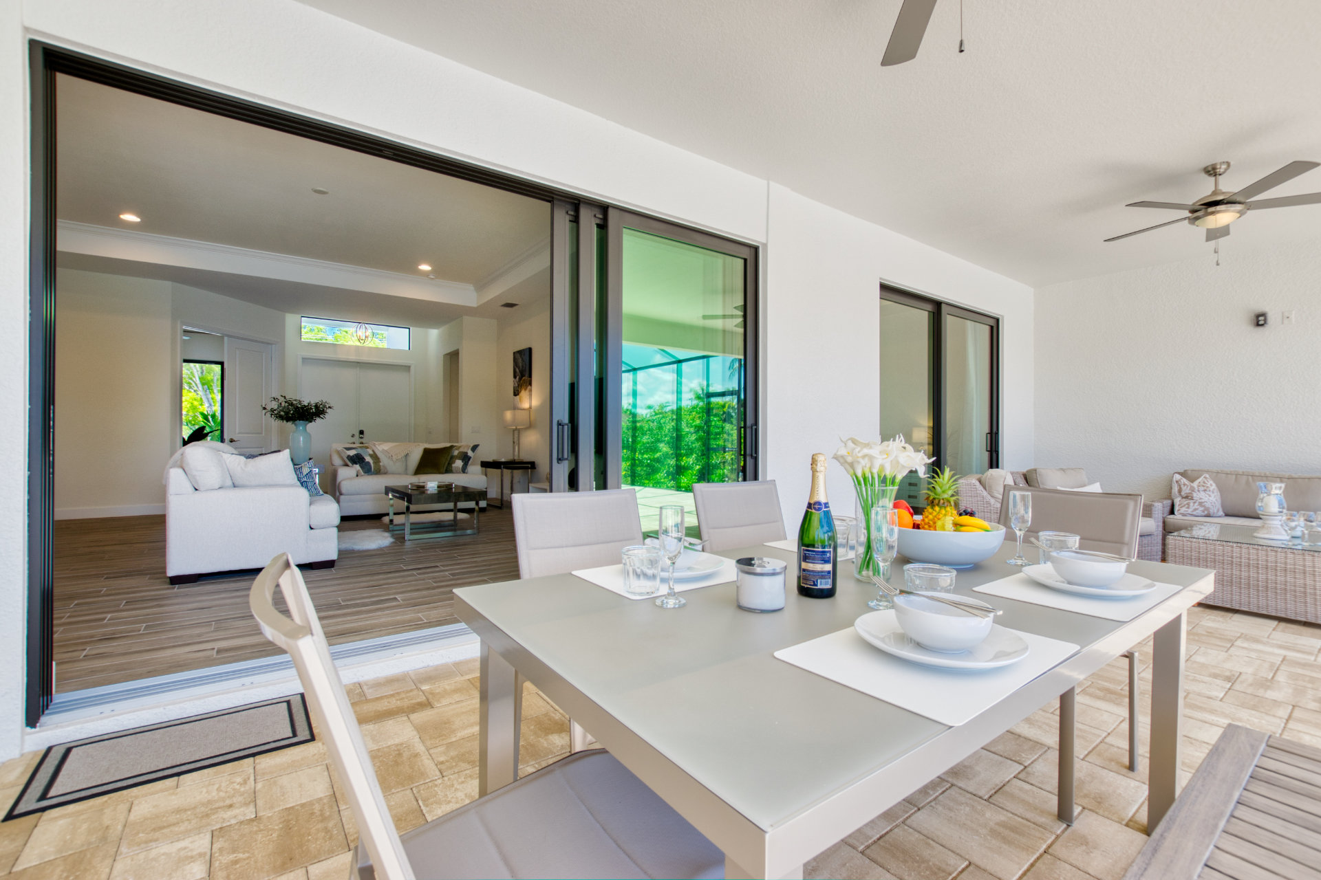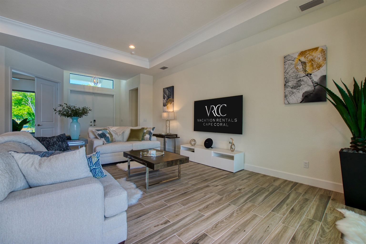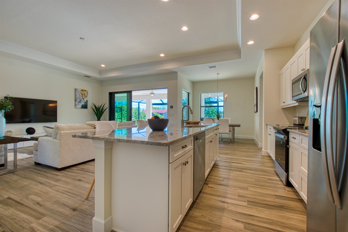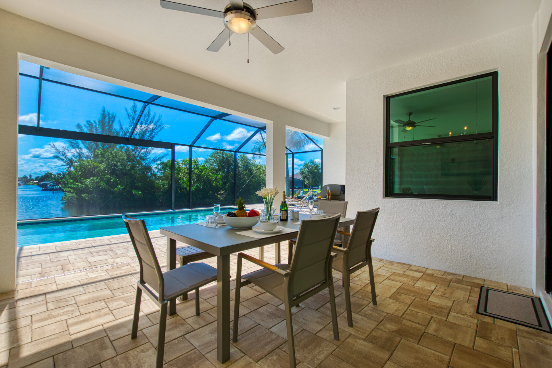3 Bedrooms • 2 Bathrooms 2 Baths • Sleeps 3-6Villa Tesoro has been constructed as holiday home and welcomes up to 6 persons with a lot of space and privacy. This gorgeous, new construction vacation villa is located in the south-west corner of Cape Coral very close to the Tarpon Point. It is one of the best and most sought after residential areas in Cape Coral. Shops, doctors, pharmacies, etc. are nearby. Be the first one in this fabulous new construction. The Camelot Park is quickly accessible. There are also 2 free tennis courts available, which are also illuminated in the evening.The boat location of this house is fantastic. It is a 45min beautiful boat route to the Caloosahatchee river which offers quick access to the Gulf of Mexico, it is also one of the most beautiful boating routes here in the area.The right boat can optionally be booked in addition to this house and will be handed over to you by an expert boatman on arrival. You will then find out about boat instructions and tips on site. All our boats have powerful engines GPS system with depth measurement and fish-finder function, cool box, cabin and Bluetooth radio. BOATING IN FLORIDA IS ALLOWED WITHOUT A LICENSE !!