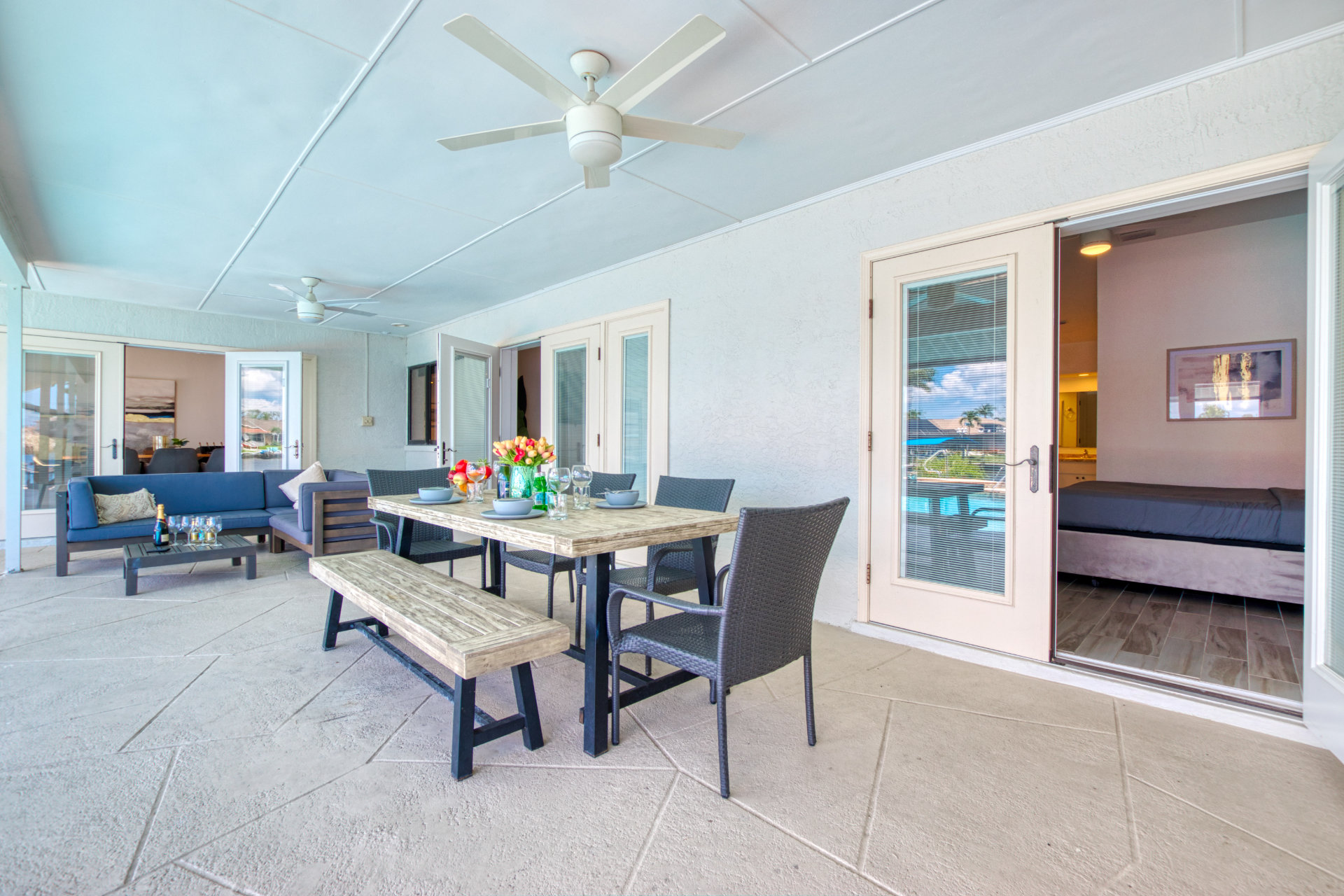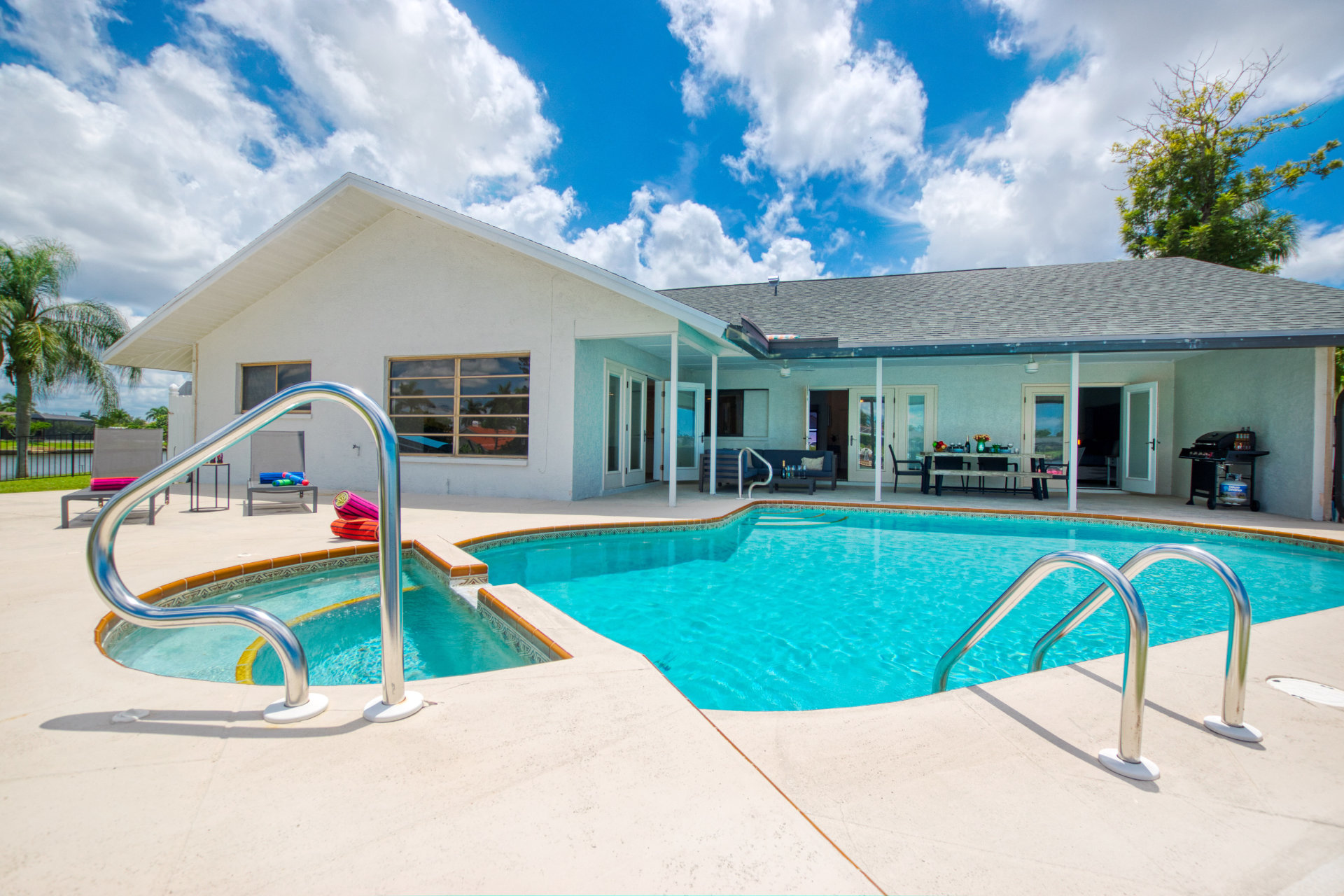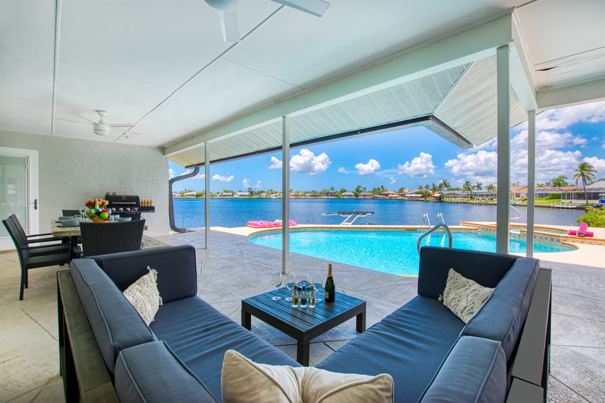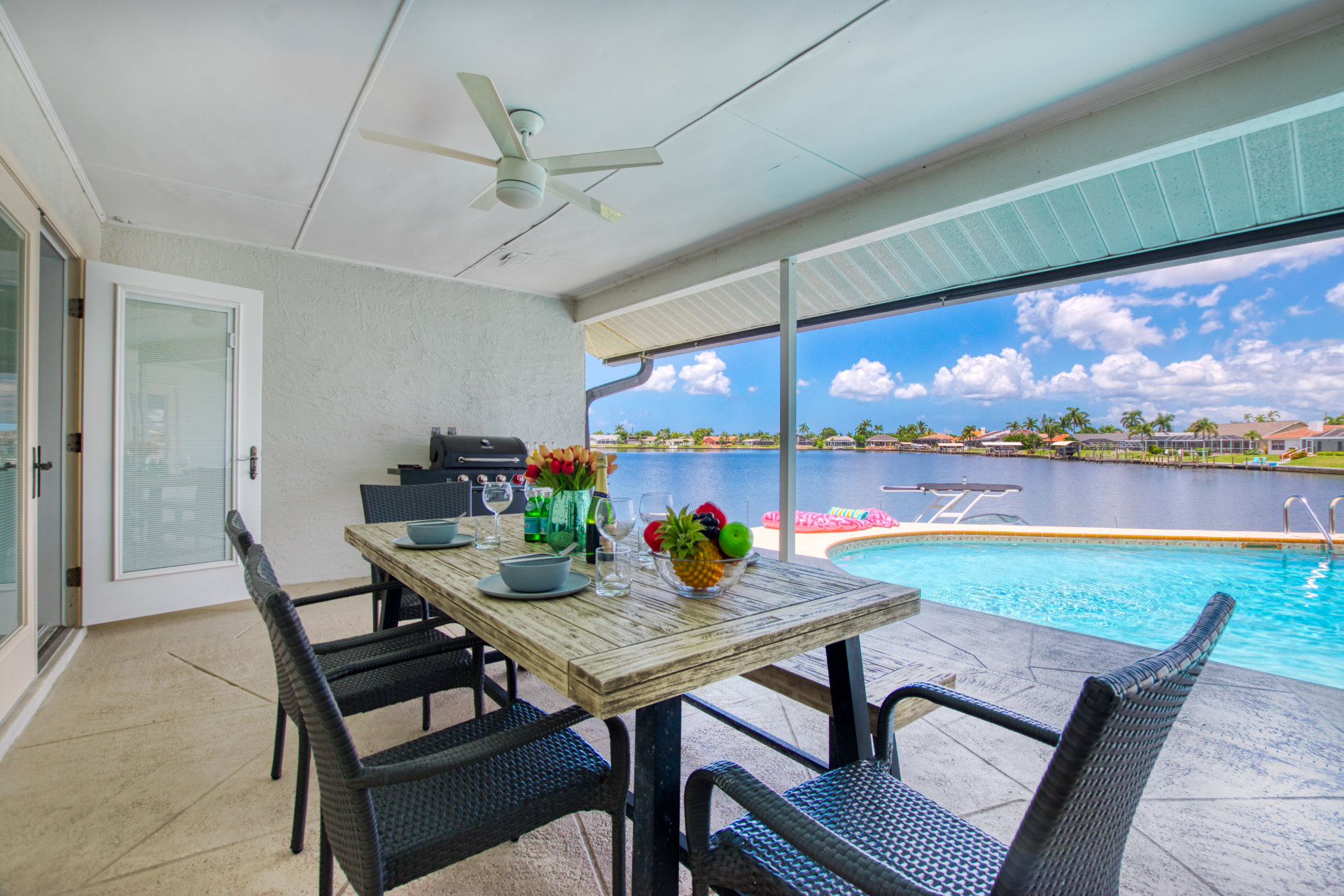 4 Bedrooms • 2 Bathrooms 2 Baths • Sleeps 4-8Villa The View - Grandiose location in Southwest Cape Coral overlooking each of Cape Coral's 4 saltwater lakes. Dolphins and manatees are guaranteed right in front of your own holiday home, right on the connecting piece. Boaters get their money's worth in this house. You have very fast boat access to the Gulf of Mexico. You don't have to take long tours through the almost endless canal system. You'll be on the open water in 10 minutes. We therefore recommend using the in-house boat, which can be booked separately.