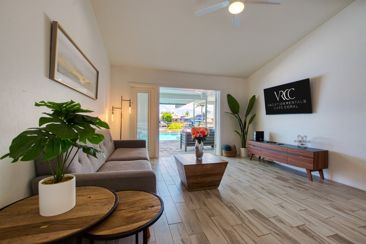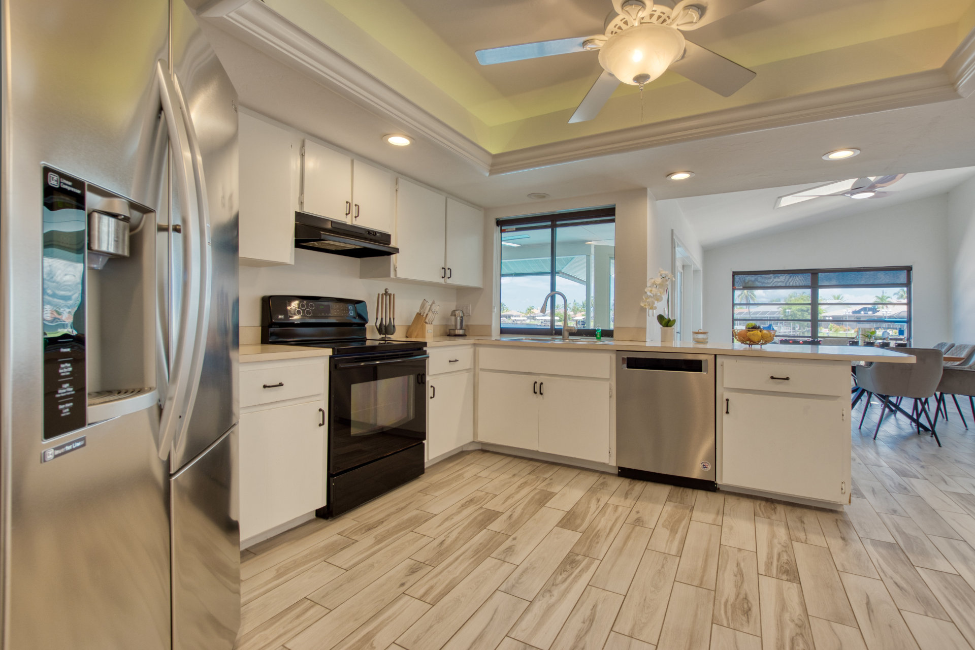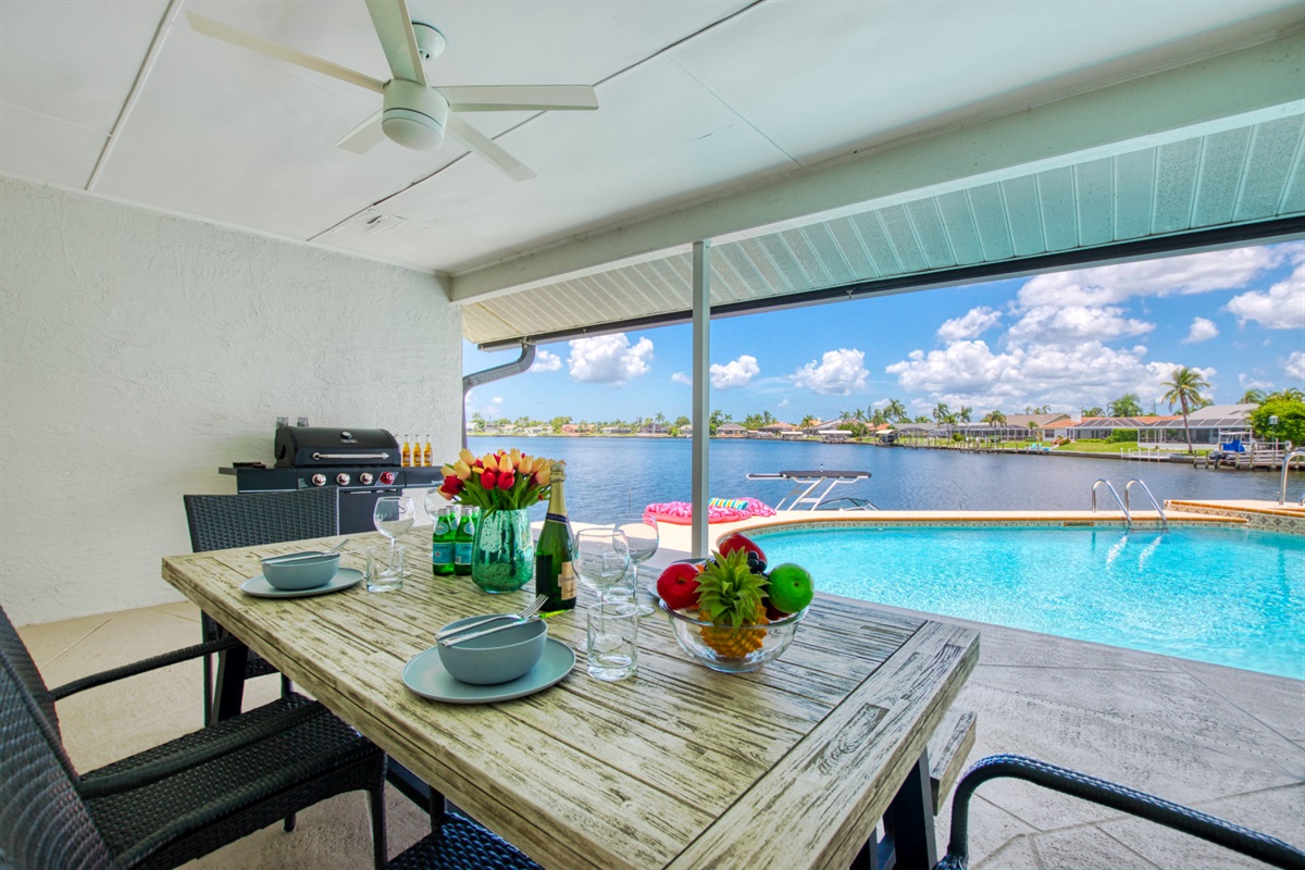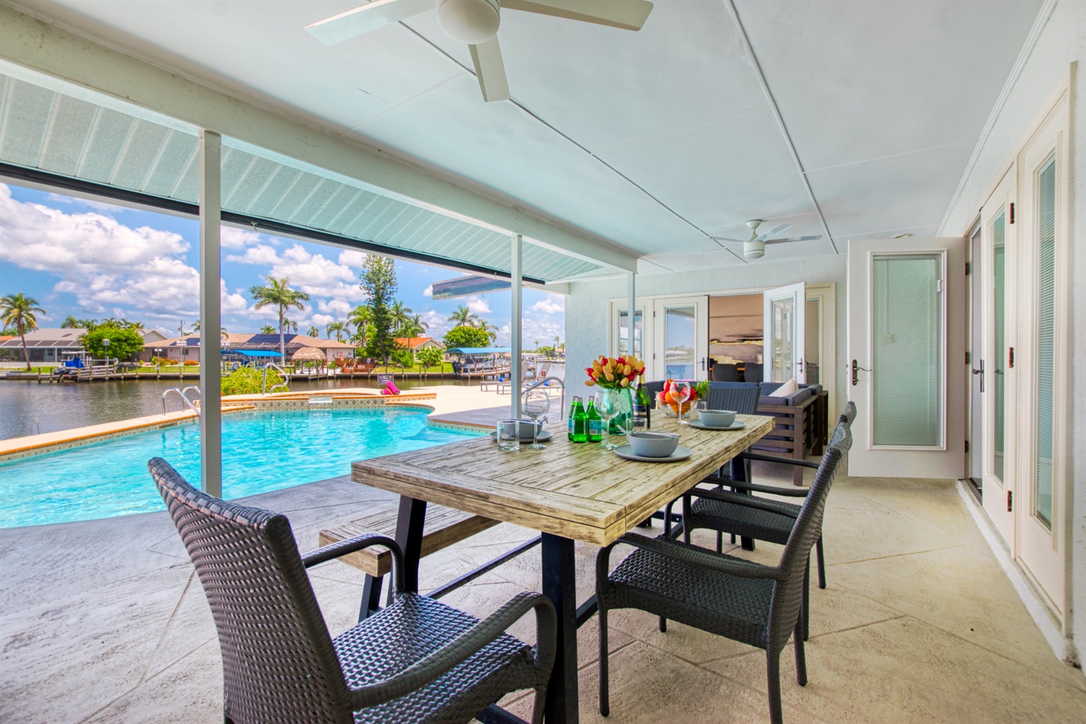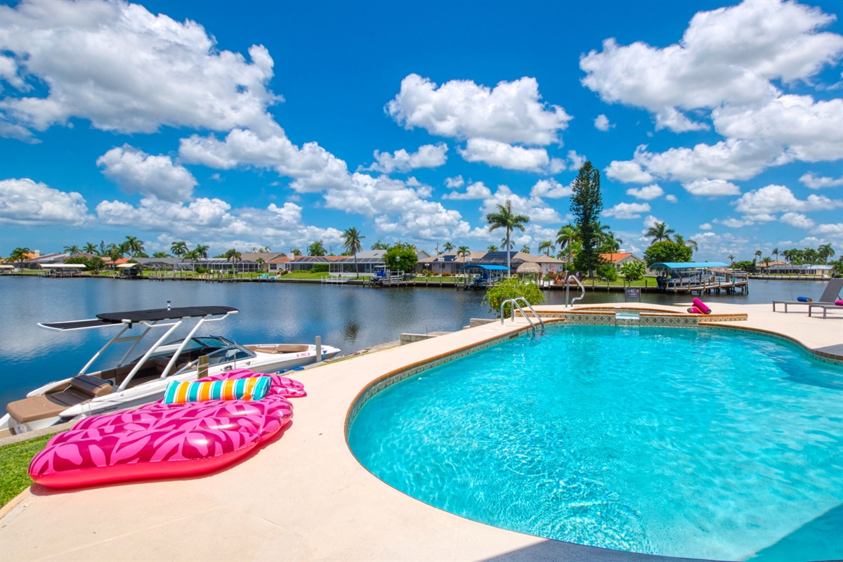 4 Bedrooms • 2 Bathrooms 2 Baths • Sleeps 4-8Villa The View - Grandiose location in Southwest Cape Coral overlooking each of Cape Coral's 4 saltwater lakes. Dolphins and manatees are guaranteed right in front of your own holiday home, right on the connecting piece. Boaters get their money's worth in this house. You have very fast boat access to the Gulf of Mexico. You don't have to take long tours through the almost endless canal system. You'll be on the open water in 10 minutes. We therefore recommend using the in-house boat, which can be booked separately.