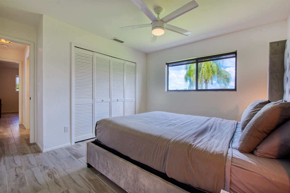 The large master suite offers direct pool access, a king-size bed, a spacious master bath. The second bedroom also has a lake view and a king size bed. The 3rd bedroom has a lake view and a queen size bed. Bedroom number 4 also has a queen size bed. The house has 2 bathrooms with showers, a comfortable living room, dining room and laundry room. A spacious pool terrace surrounds the crystal blue, oversized pool and whirlpool. An outdoor shower is available as well as a large BBQ grill.